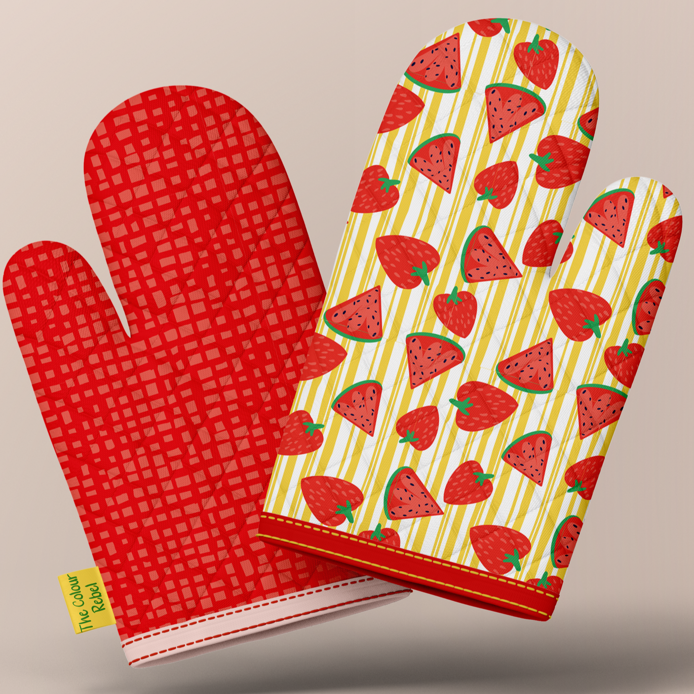 A playful stripe scattered with strawberries and watermelon — energetic, cheeky, and ideal for covers, textiles, and gift bags.