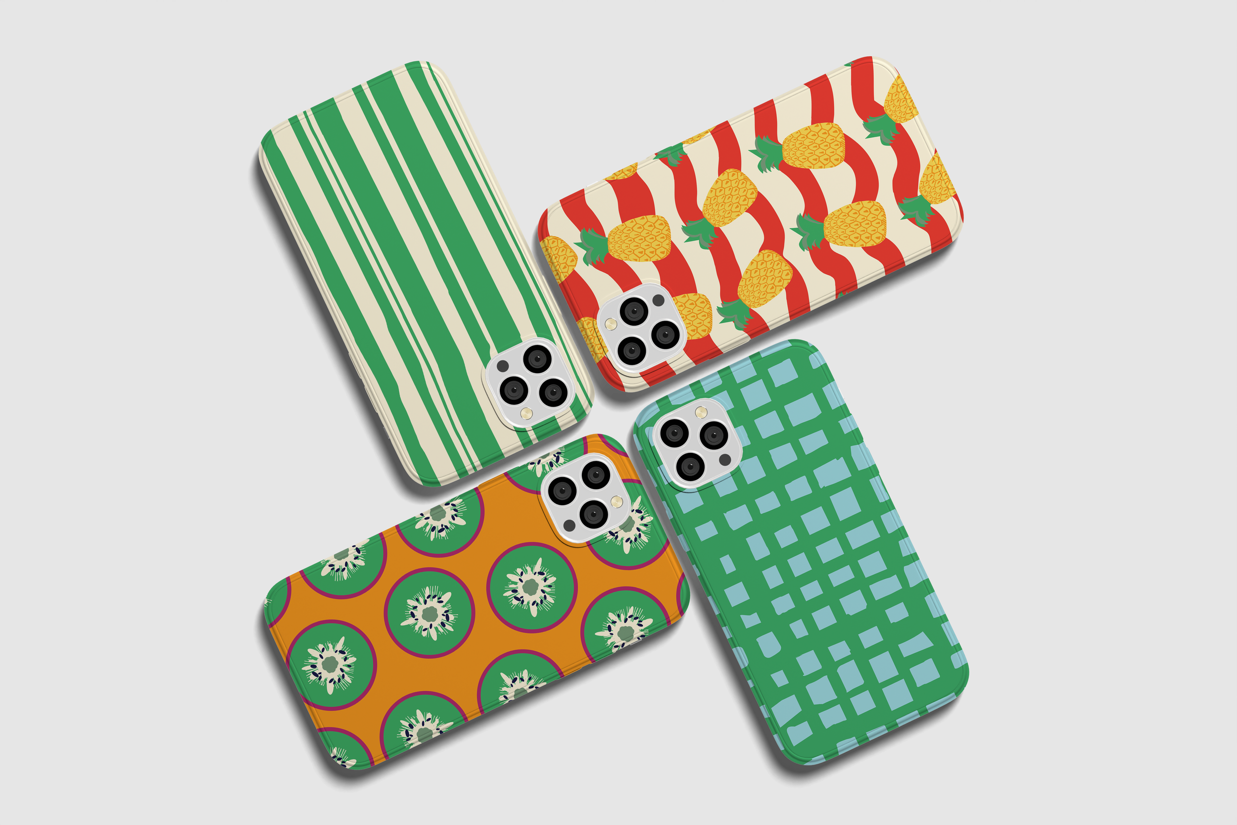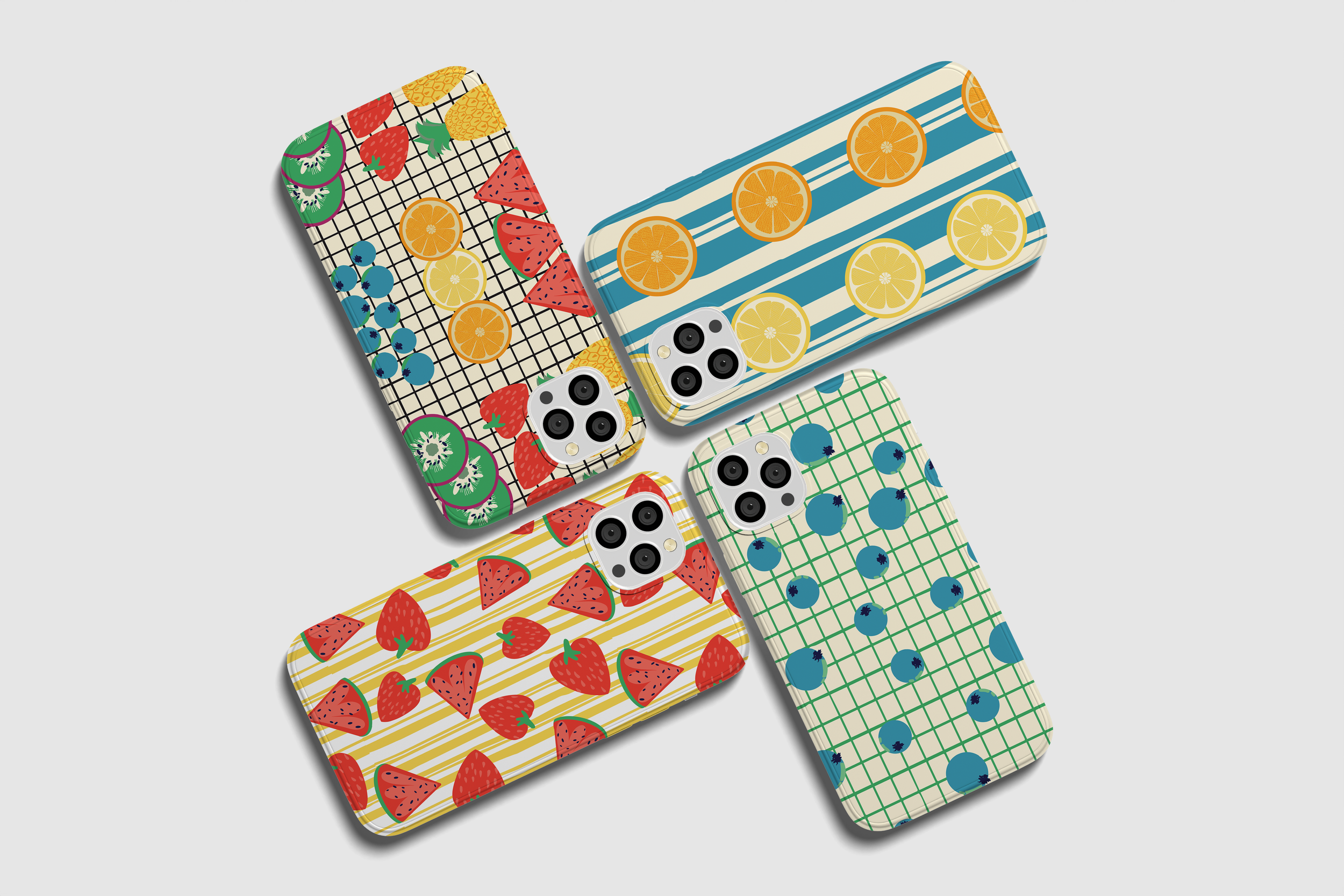 Fruity Loopy Florals is a bold, high-colour collection designed for tech accessories that need instant visual impact. Featuring simplified fruit motifs, strong repeats, and clear colour blocking, these patterns are optimised for: